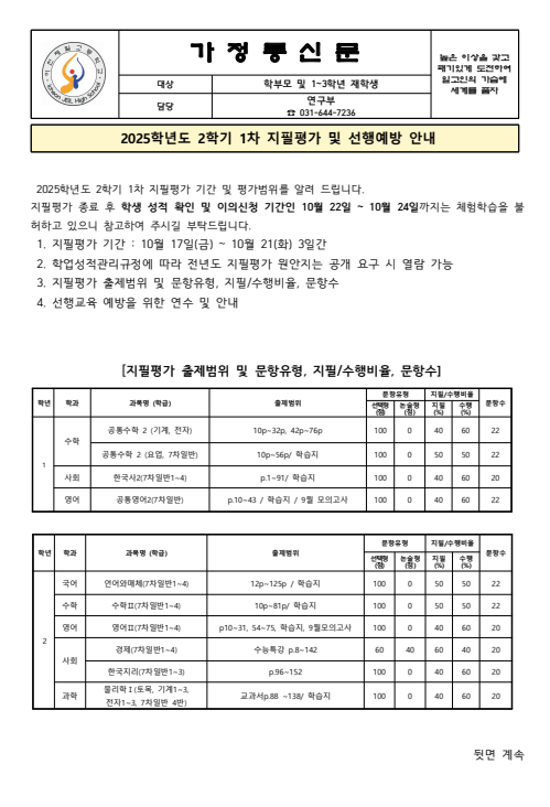 2025학년도 2학기 1차 지필평가 및 선행예방 안내 가정통신문.pdf