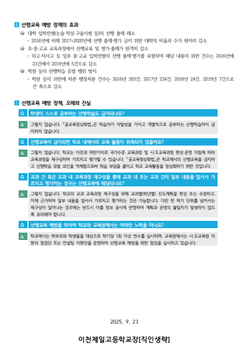 2025학년도 2학기 1차 지필평가 및 선행예방 안내